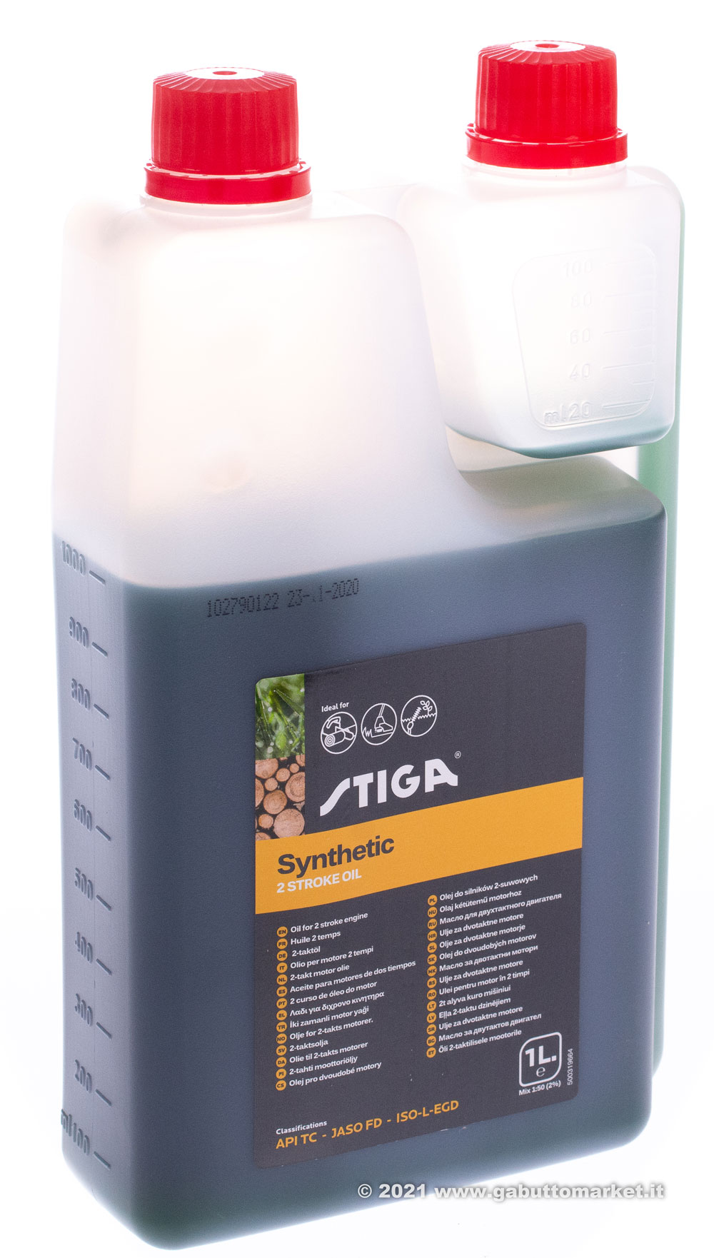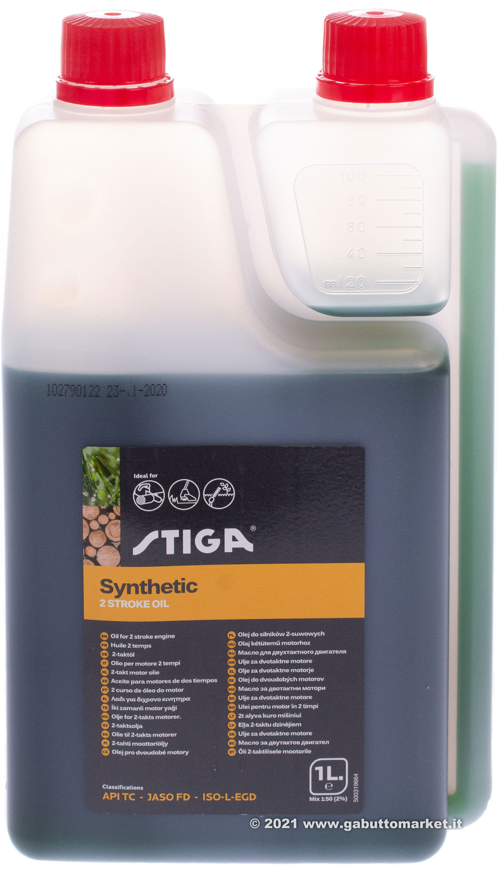 OLIO PER MISCELA 2T 100% SINTETICO STIGA ML.100 JASO FD-API TC-ISO-L-EGD-GLOBAL GD
