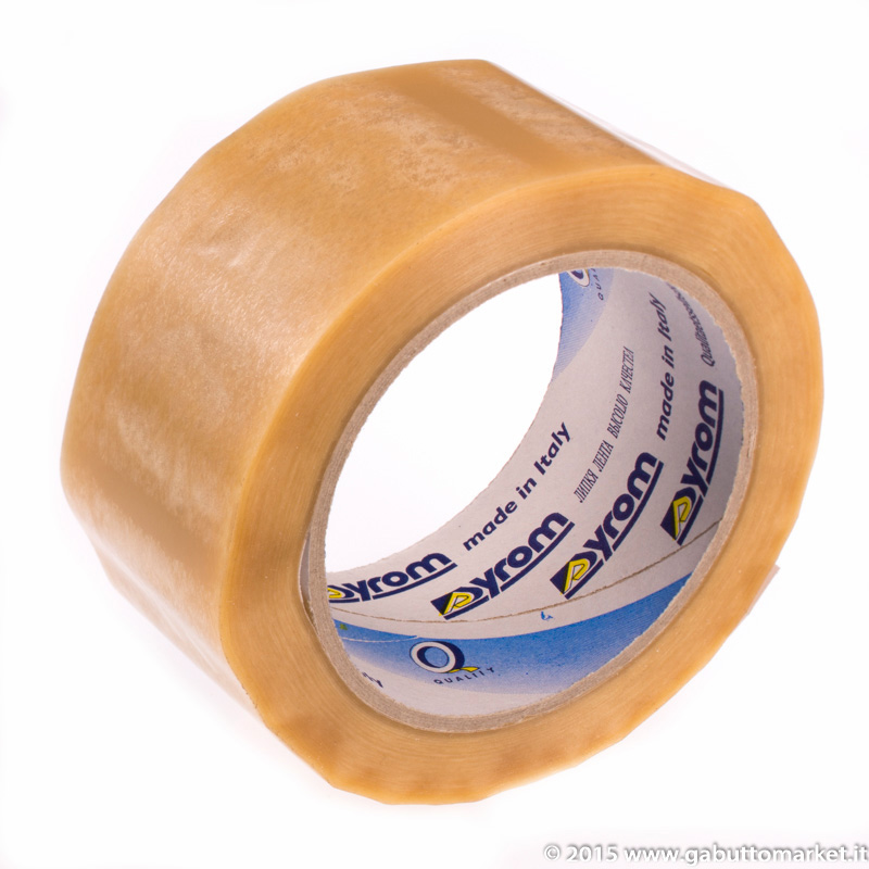 Nastro adesivo per imballaggio, consente il taglio manuale senza dispenser. Ottima capacità adesiva.
