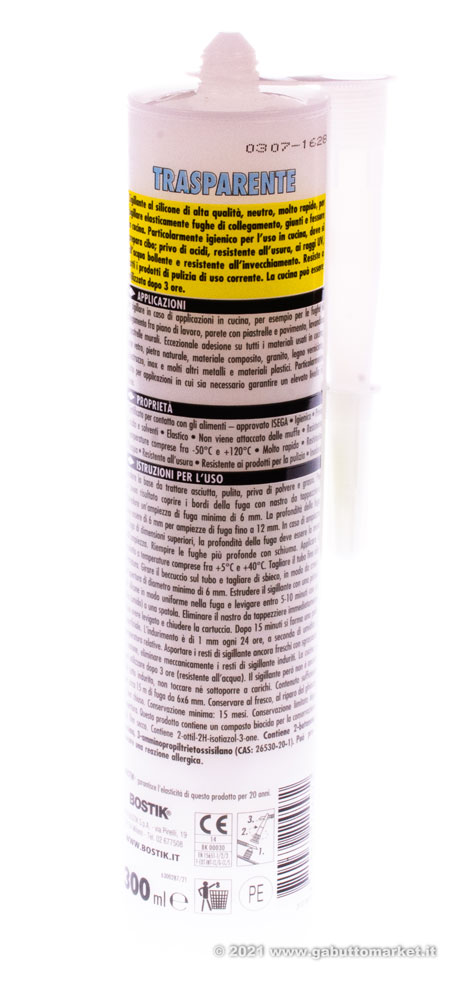 SILICONE BOSTIK CUCINA CERTIFICATO PER CONTATTO CON ALIMENTI ATOSSICO TRASPARENTE ML.300