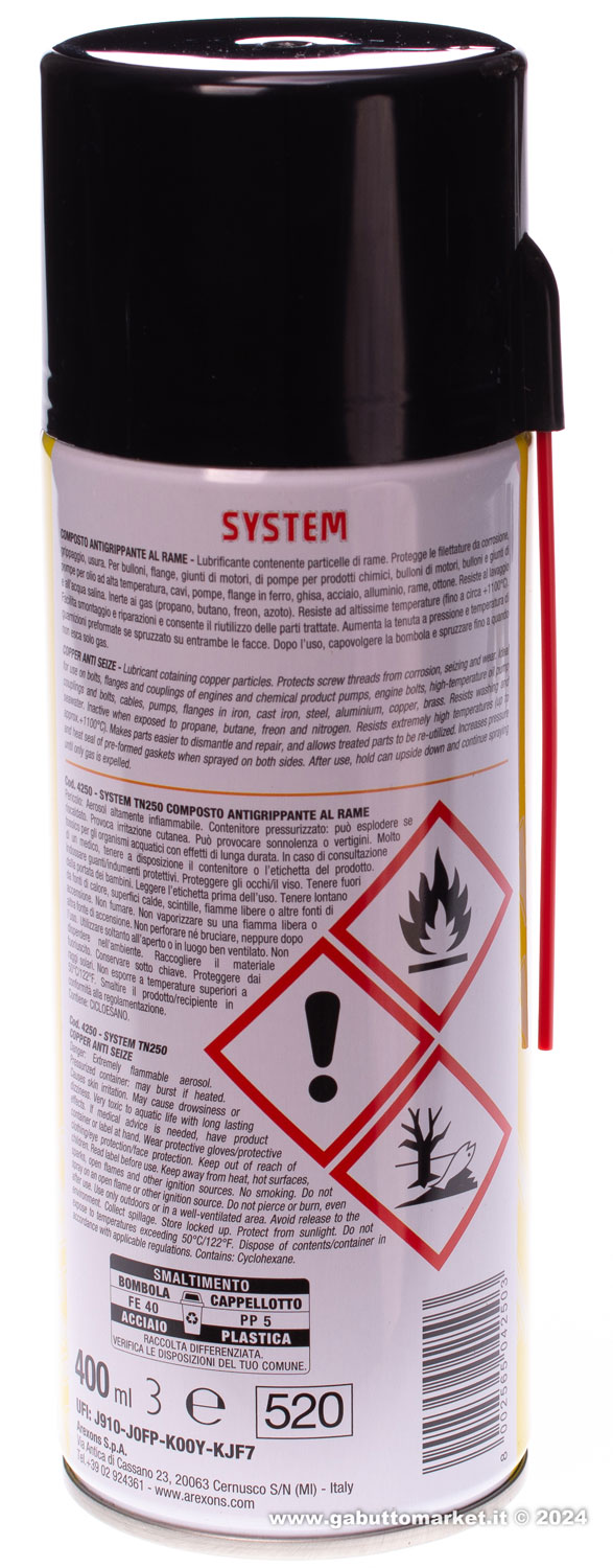 COMPOSTO ANTIGRIPPANTE AL RAME SPRAY SYSTEM TN250 AREXNONS ML.400