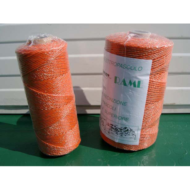 Il filo è composto da 3 fili in accio Inox da mm. 0,16 in terfolo su cavo in nylon aranzione.