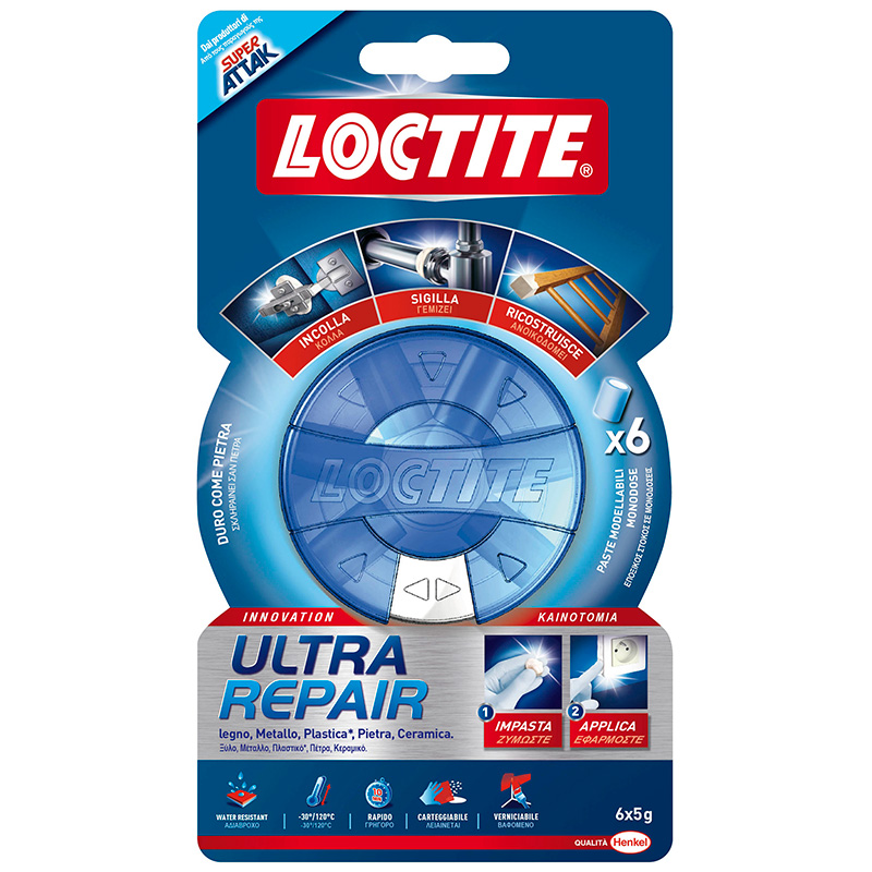 COLLA LOCTITE ULTRA REPAIR SUPER ATTAK 6X5GR. IN PASTIGLIE EPOSSIDICHE CON PRATICO DIPENSER HENKEL