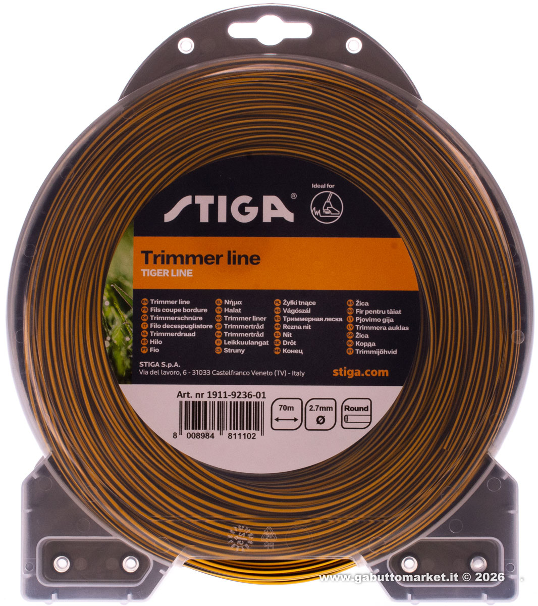 Filo per decespuglaitore Stiga Tondo mm. 2,7 in dispenser in plastica rigida da 70 Mt.