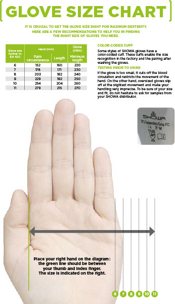 immagine guida taglie guanti showa