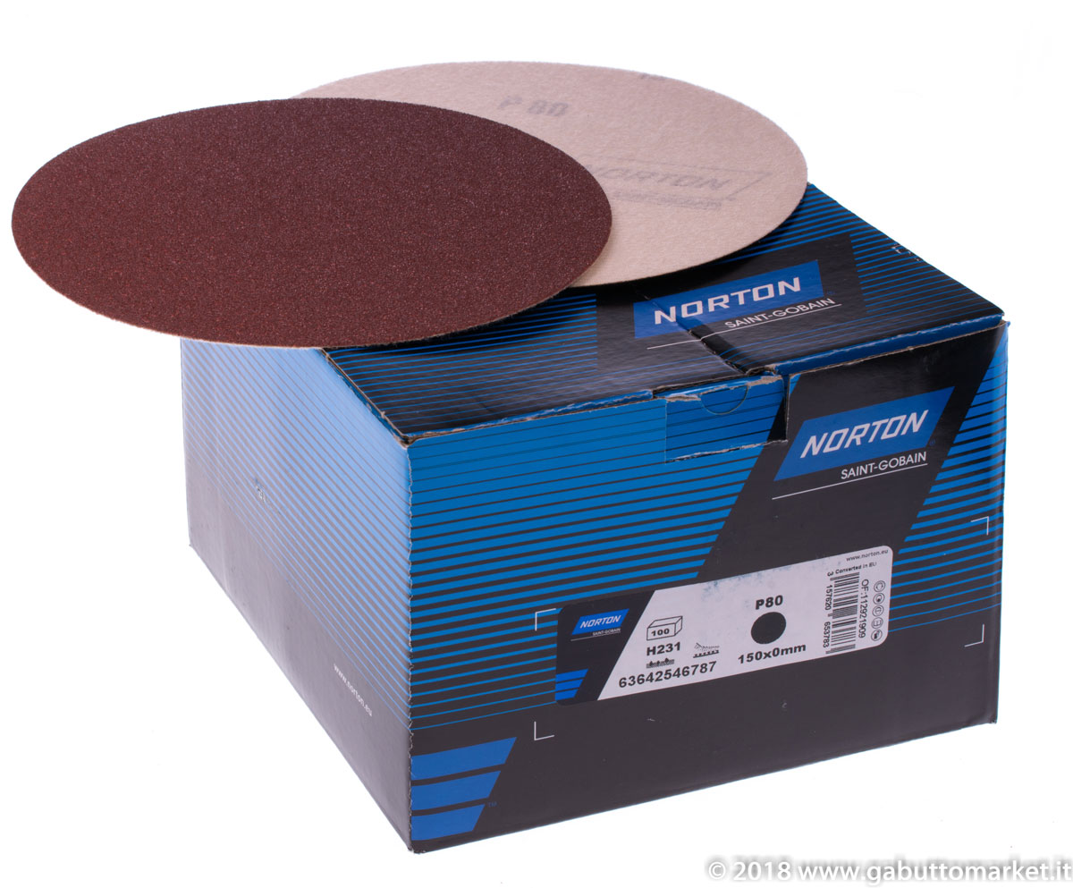 DISCHI ABRASIVI VELCRATI NORTON SAINT-GOBAIN 150 GR. 80 0H+0H OSSIDO DI ALLUMINIO ROSSO H231
