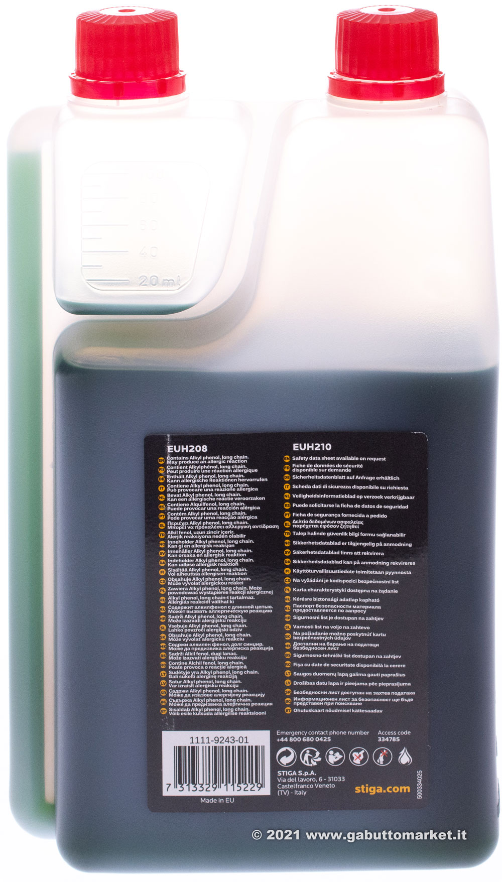 OLIO PER MISCELA 2T 100% SINTETICO STIGA ML.100 JASO FD-API TC-ISO-L-EGD-GLOBAL GD
