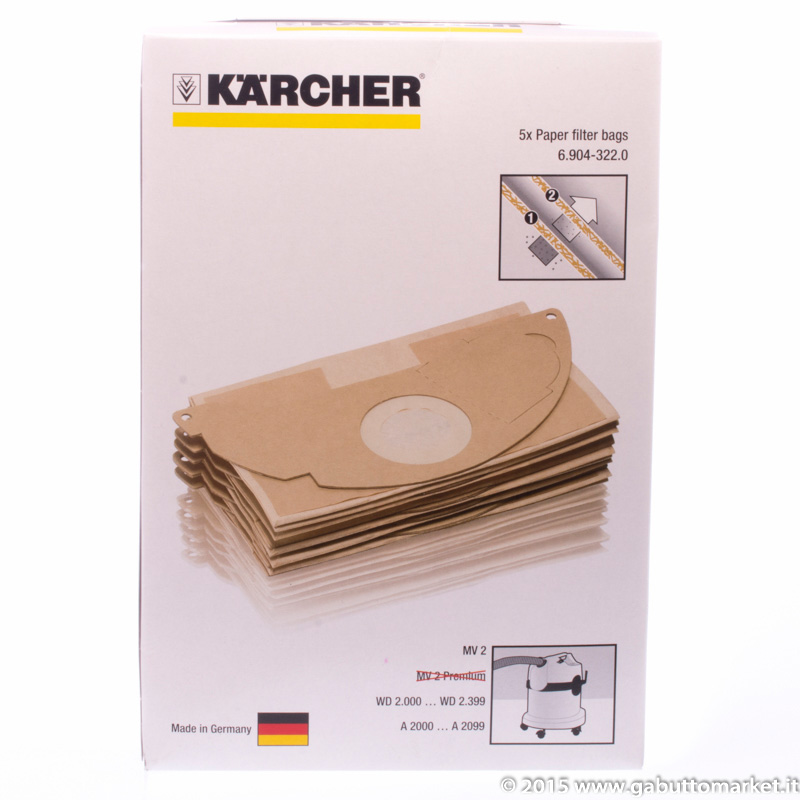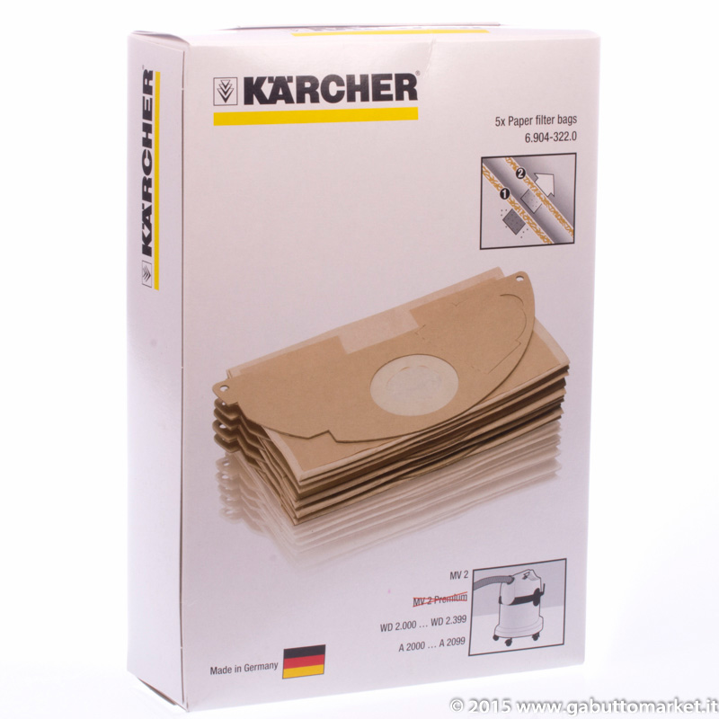 SACCHETTI PER ASPIRATORI KARCHER A 2004 - A 2003 - A 2000 - A 2099 - WD 2.000 - WD 2.999 - MV2